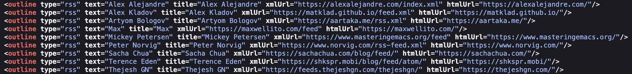 Includes an OPML for importing into a feed reader.