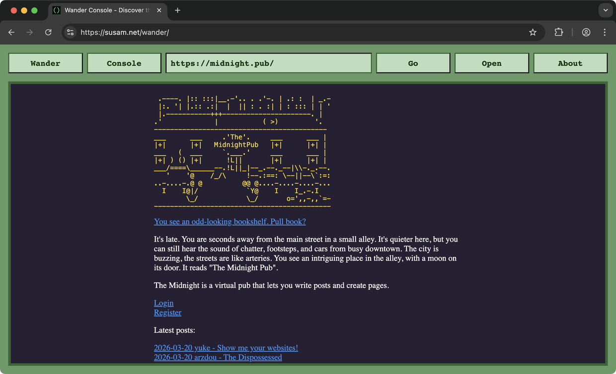 To try Wander, go to: https://susam.net/wander/