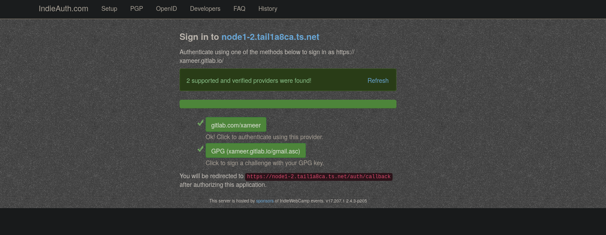 I am trying to authenticate my way to get into Indieweb site & AT proto is down...