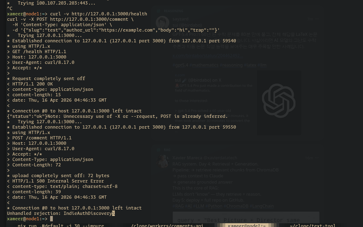 my comment-api service (oh crap its a very basic axum server proxied as a #tailscale warp service seems alive and healthy to serve for #indieauth comments for hakyll static pages