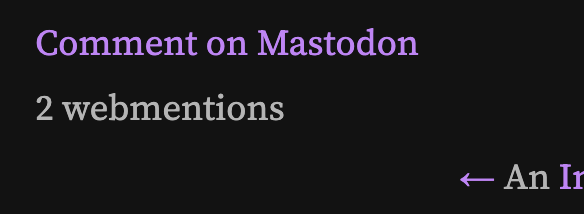 My next task is going to be showing the Mastodon avatars and Webmention sources instead of the counter.