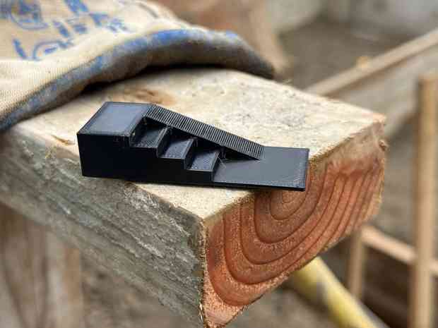 "text": "I made a little 3D printed model of the concrete stairs they are building the forms for in order to double check it will be the right shape"