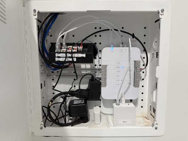 "text": "went around to all the mini splits and got them connected to wifi! I don't love that it's a proprietary app, so I'm looking into an alternative controller that taps into the serial bus on the indoor units."