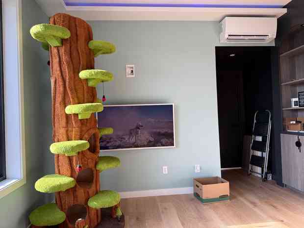"text": "Apparently should have built the cat tree before mounting the TV on the wall..."