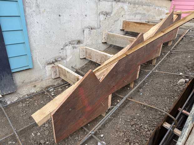 I made a little 3D printed model of the concrete stairs they are building the forms for in order to double check it will be the right shape