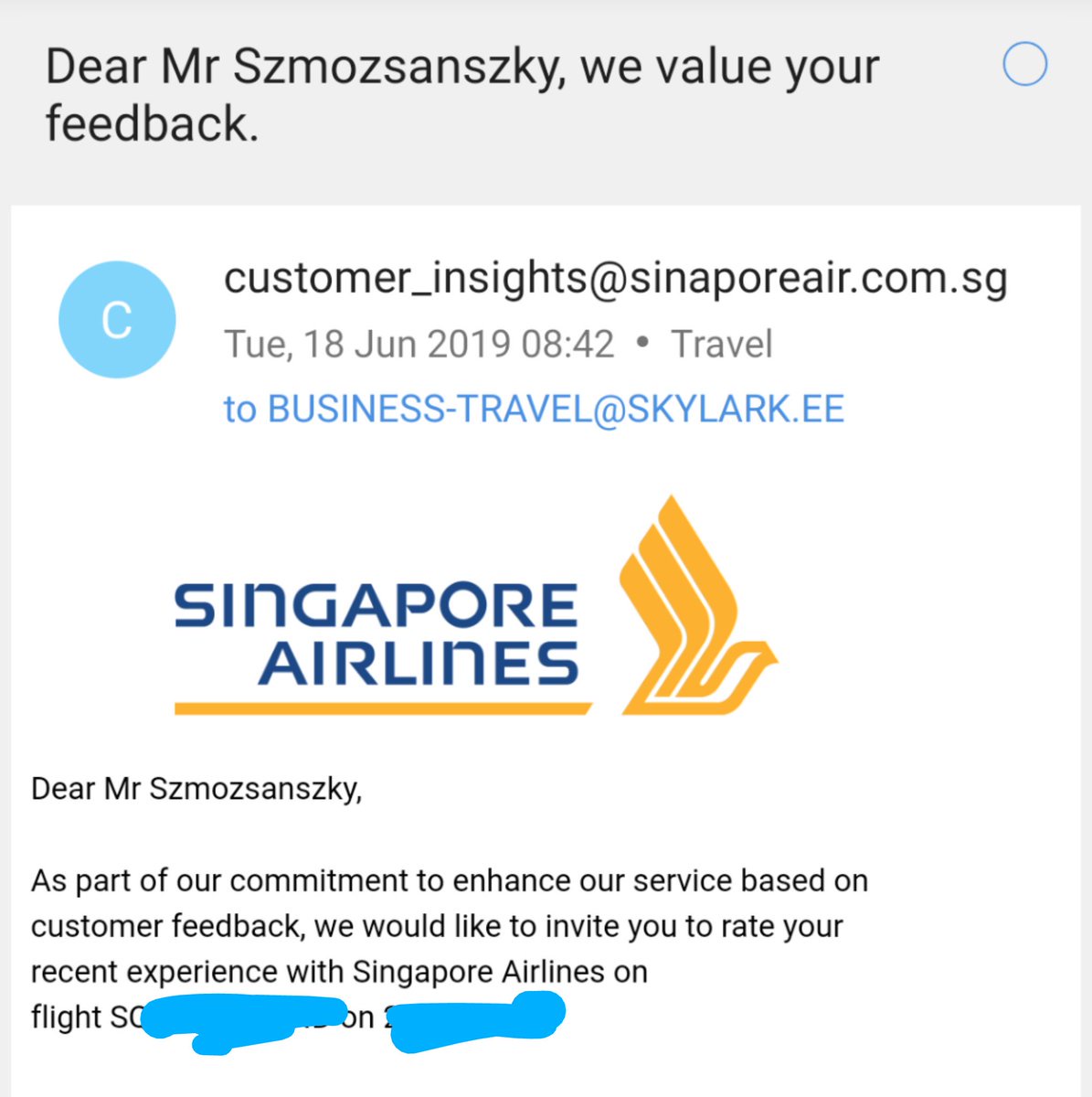 Wow… you'd think legitimate post-flight emails of @SingaporeAir do not have a typo in the sender's domain name—and of course you'd be so wrong! 😲❔