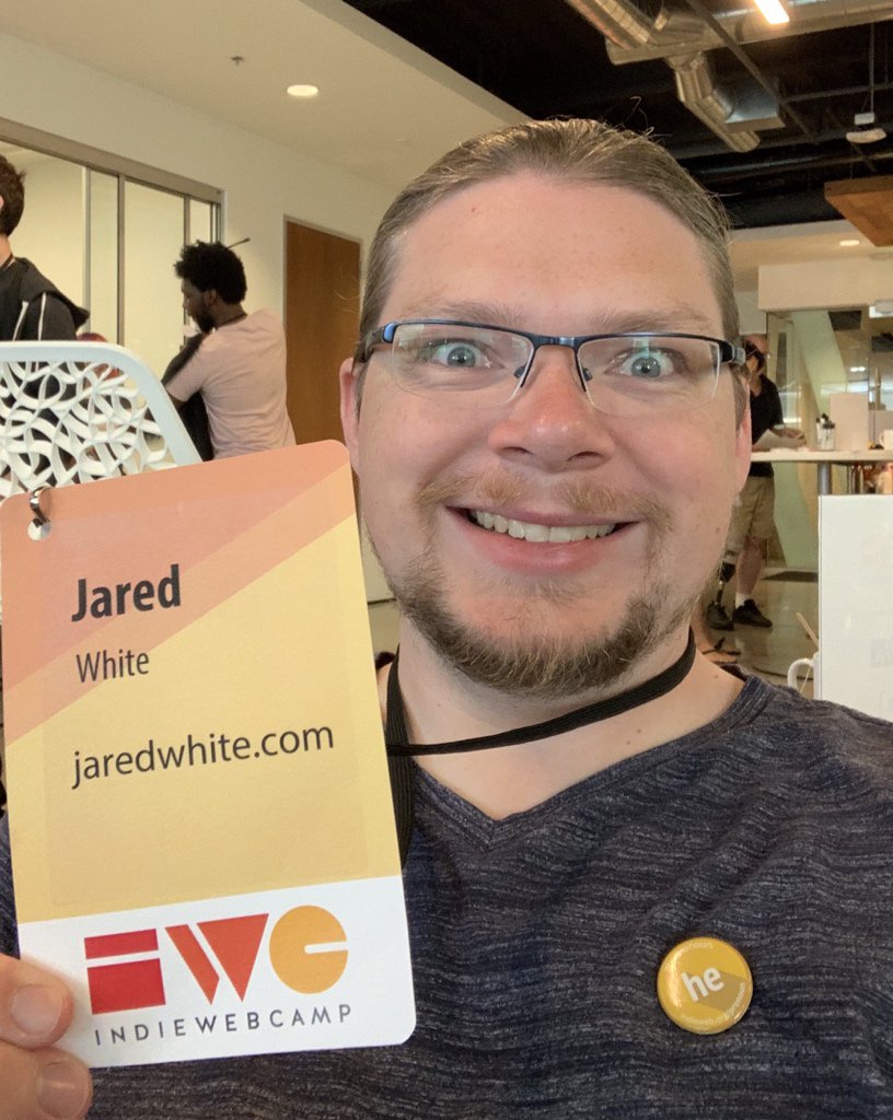 "html": "Here I am looking like a bozo, excited about the <a href=\"https://twitter.com/search?q=%23IndieWeb\">#IndieWeb</a> Summit in Portland 2019! <a href=\"https://twitter.com/indiewebcamp\">@indiewebcamp</a>"