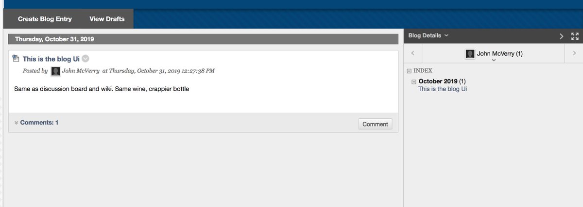 #OpenEd19 #ungrading I allowed my students to choose to live in the LMS this semester, make me less happy, so sterile the Blackboard blogging environment...so not blogging. Solution: Dunno keep modeling #DoOO and #IndieWeb as much as possible