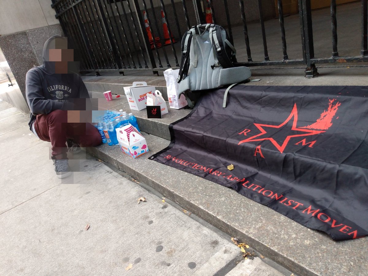 "text": "This morning, after that wonderful resistance last night, we were out bright and early in from of Brooklyn central bookings, handing out water coffee, literature, and good to people being released from pig custody. #thestrugglecontinues #ftp #acab #TheUSisTheEnemy",