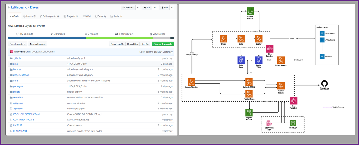Keith's Layers for #AWS Lambda & Python 3.7 - github.com/keithrozario/K… , including full build pipeline. Nice work, @keithrozario !