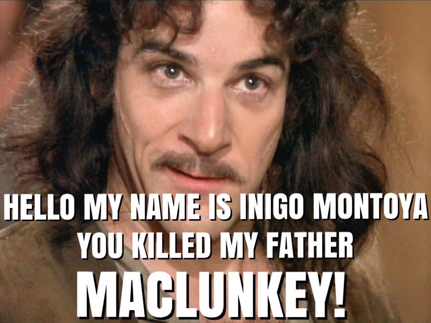 "html": "Prepare to DIE! <a href=\"https://twitter.com/search?q=%23maclunkey\">#maclunkey</a>"