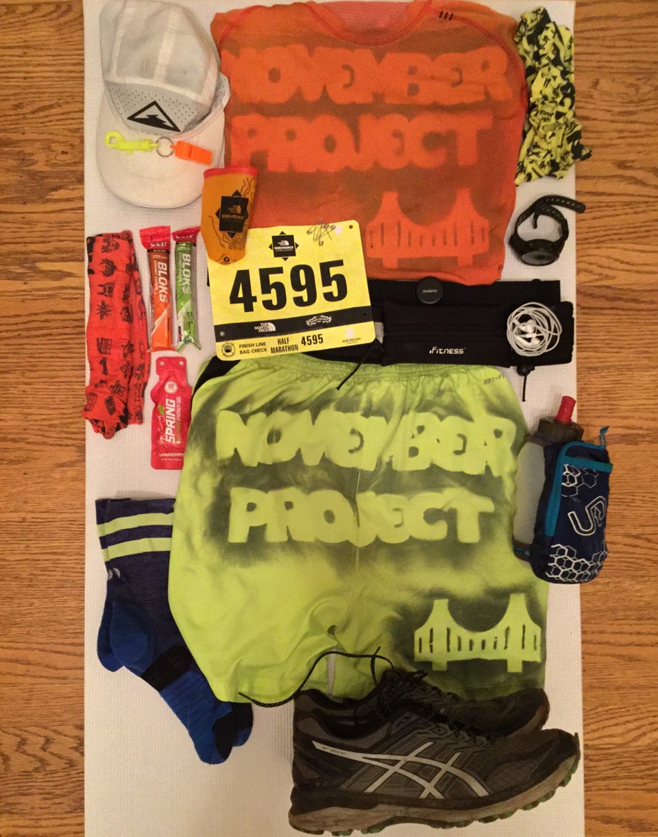 With my 50k done (https://tantek.com/t53e1) I laid out my running kit for the next day. I was feeling good so I told my dad I felt great. I was getting excited about running the half with him the next day.
