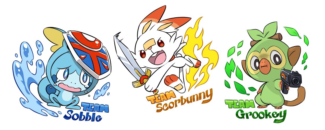 A little drawing of starters grookey, scorbunny and sobble to celebrate the release of pokemon sword and shield 🎉🎊🎉