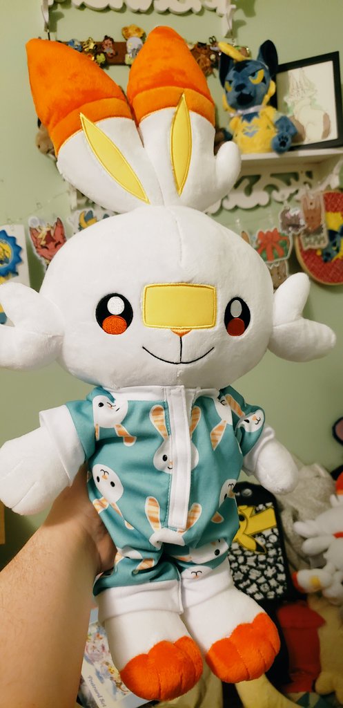 i just feel like the world needs to know the lifesize pokecen scorbunny can wear buildabear clothes