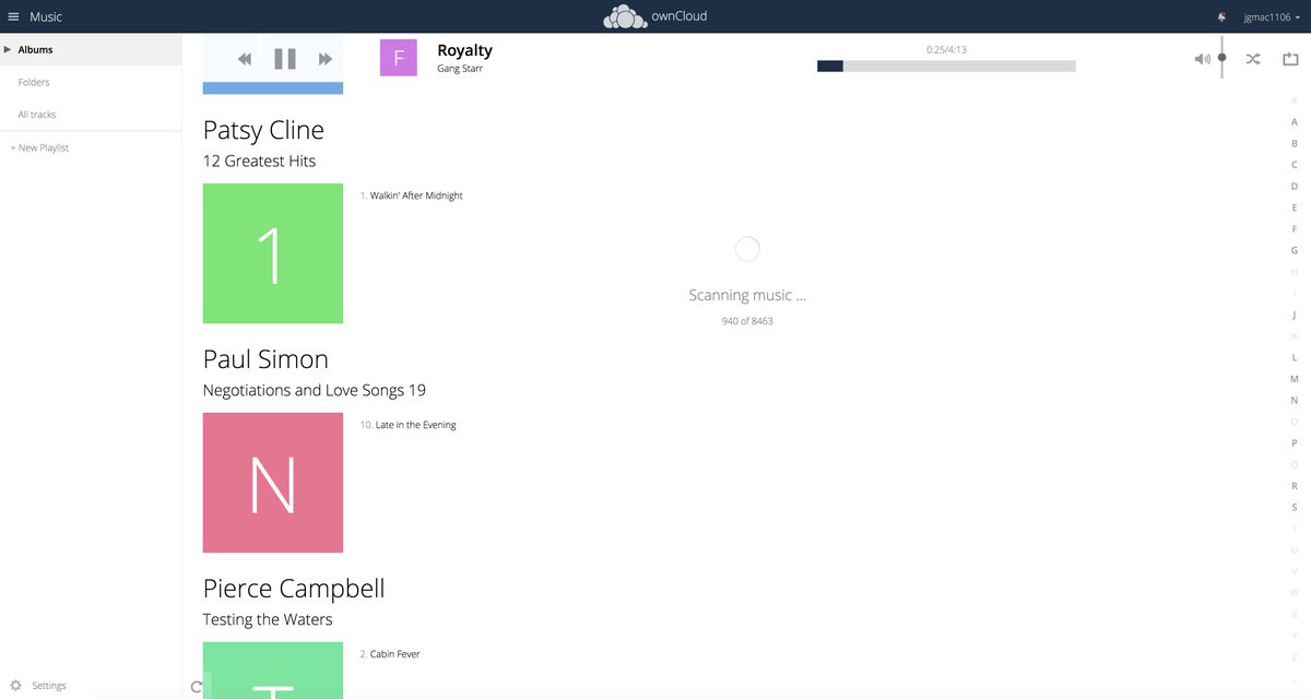 Finally Being Able to OWN and Stream my music thx @owncloud Only 11 more hours to go and all 66 gigs of music are my own
