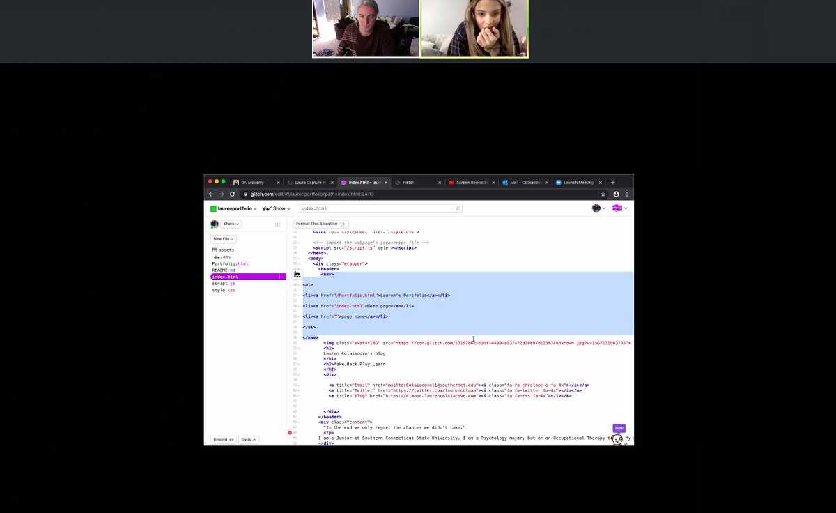 "text": "Join Lauren and I as we hack on our portfolio websites..",
