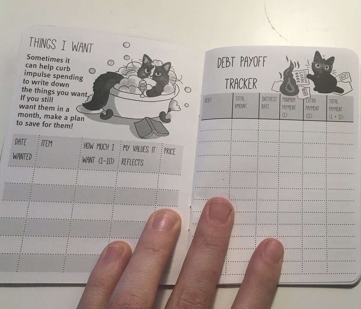 "text": "Packing up my final 100 orders from Kickstarter - and holiday sales - today! Look at these cute pocket budget planners :-)"