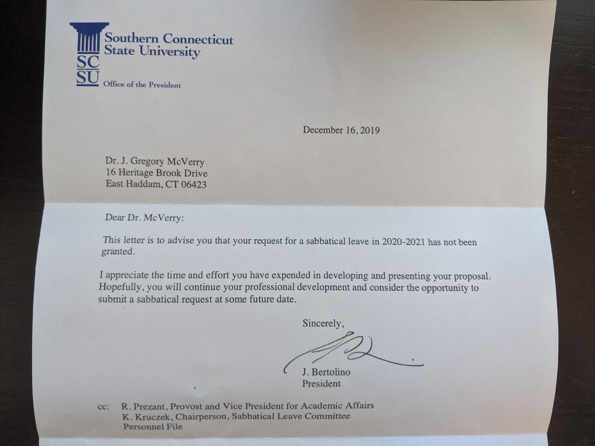 good to know my colleagues at @scsu have zero respect for my scholarship and think I need more professional development in order to qualify for a sabbatical. Denied me first time I went up tenure too. I will puit my vita up… quickthoughts.jgregorymcverry.com/2019/12/20/goo…