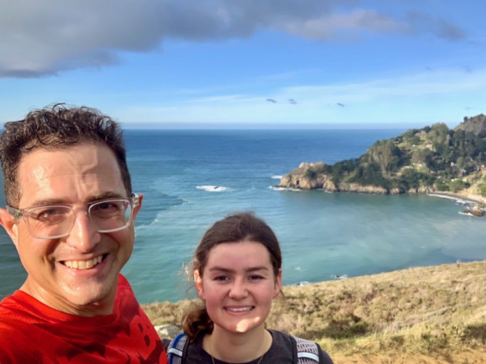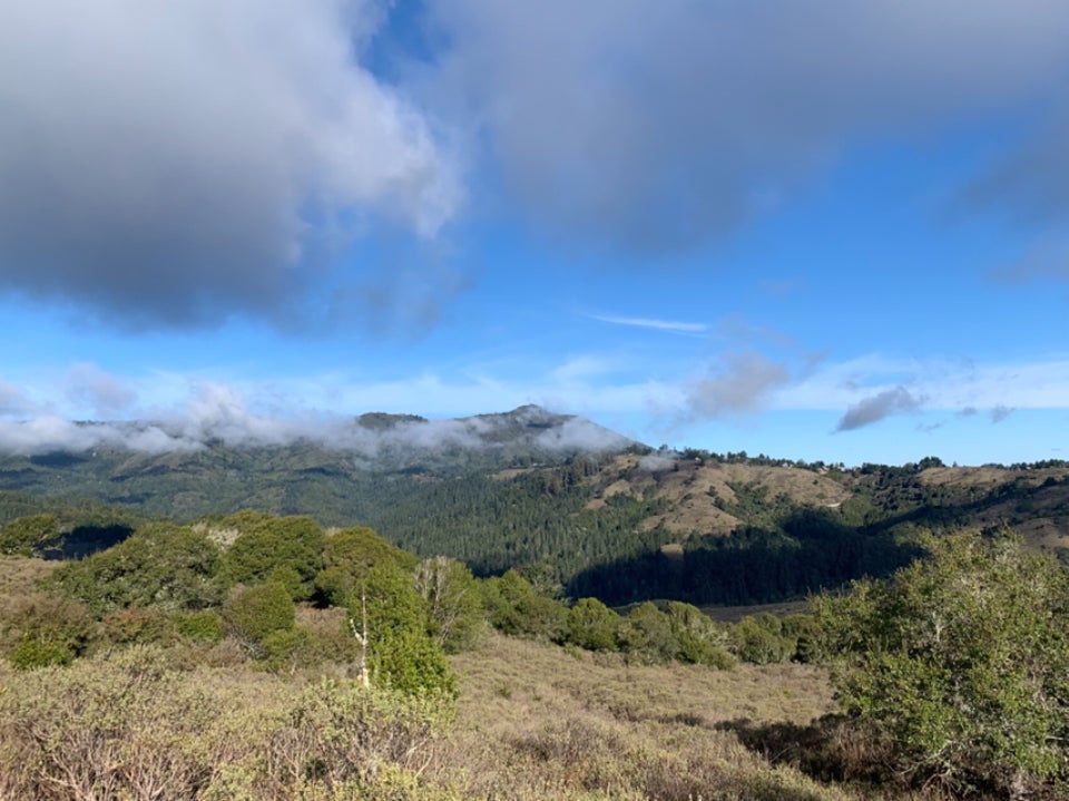 The climb up Dias Ridge was quite a slog, alternating running and walking. Whitney waited for me at the top of the ridge line where we captured photos of dramatic clouds above and passing in front of Mount Tam(6 📷 Whitney). I looked back to take in one more view of the Pacific Ocean(7) before continuing eventually onto Miwok, down to Tennessee Valley and back to our start.