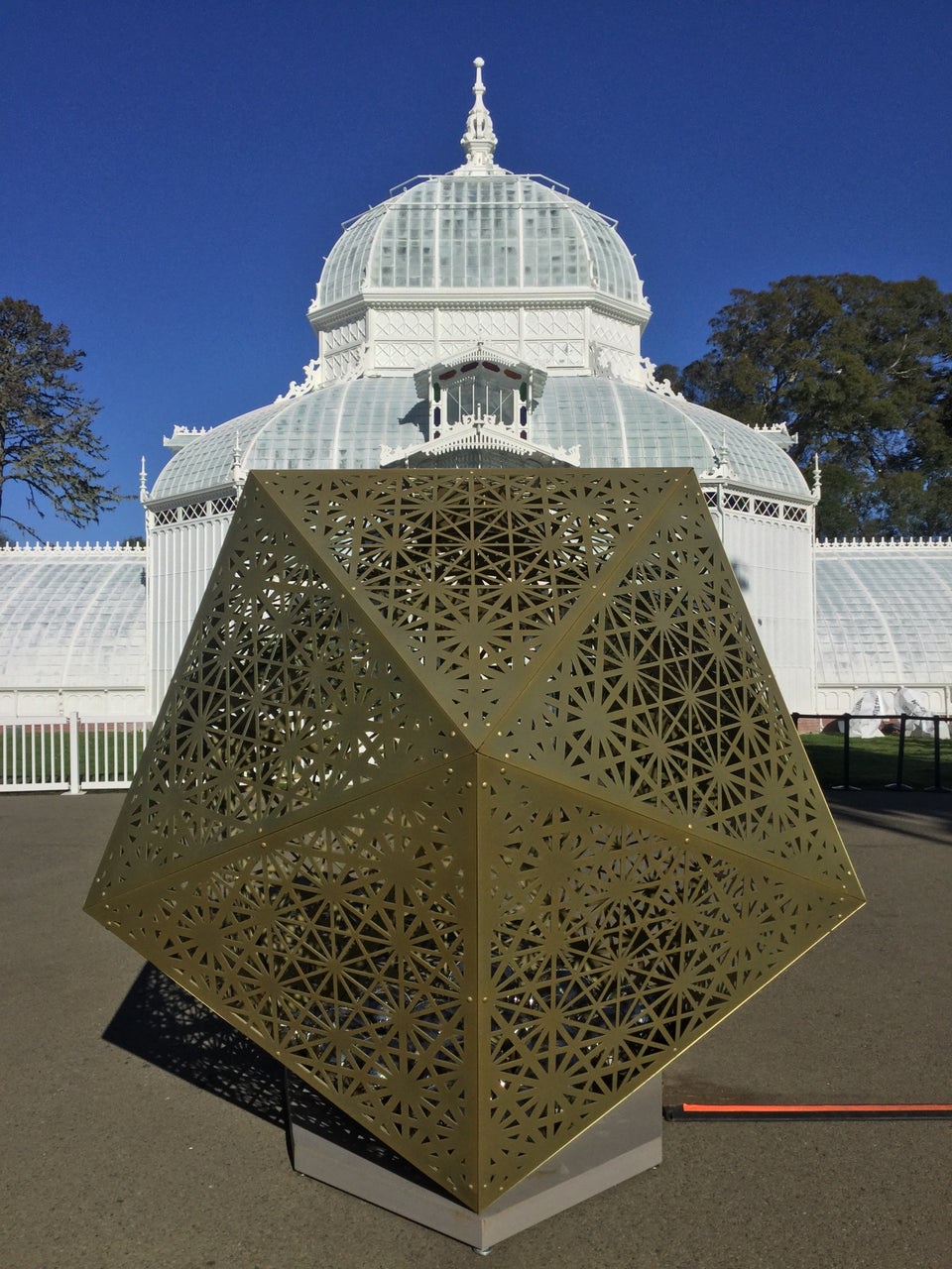 🌄🌅 5 easy miles, up hills(1) bathed in sunbeams(2), the sun lighting up the bay(3), gazing upon clear weekend views of East Bay hills(4) from the top of Corona Heights Park (5 📷 @sweethartdehart), for a talk and walk to a snack. Run to the track for a quick lap, then to the park and the Conservatory of Flowers(6), where I found a mysterious icosahedron(7). Does anyone know what it means?