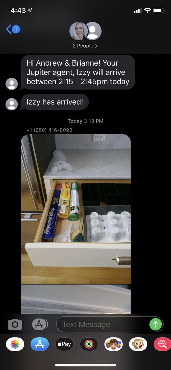 "text": "Have been enjoying Jupiter, a recent YC co I\u2019ve been testing. I set which groceries I want in my fridge and pantry, and they literally put it in there for you. And send pics (see below). Really magical.\n\nAny of my SF friends who want to try it: jupiter.co/invites",