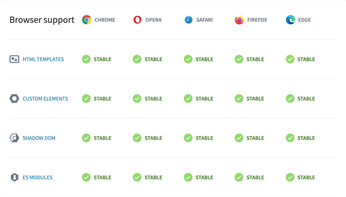 "text": "An effort 9 years in the making, but we\u2019ve finally made it.\n\nWebComponents are supported natively in every major browser"