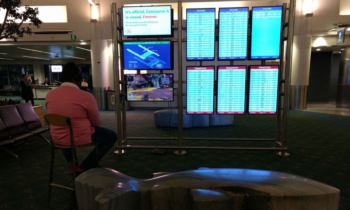 Man "hijacks" airport monitor to play PS4 game. bit.ly/2TtbSxX