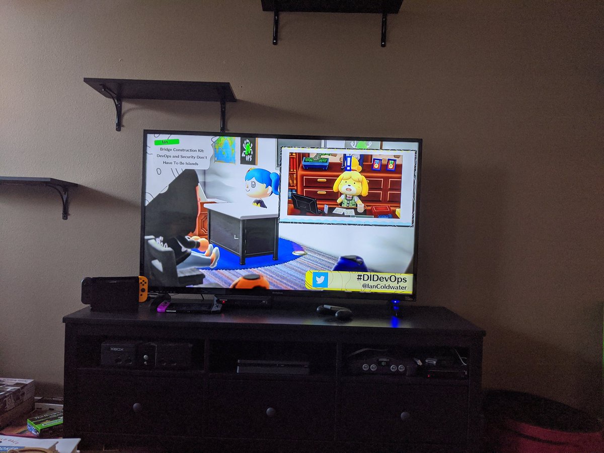 Having a quarantine viewing party of the @DIDevOps conference in animal crossing! 🎉