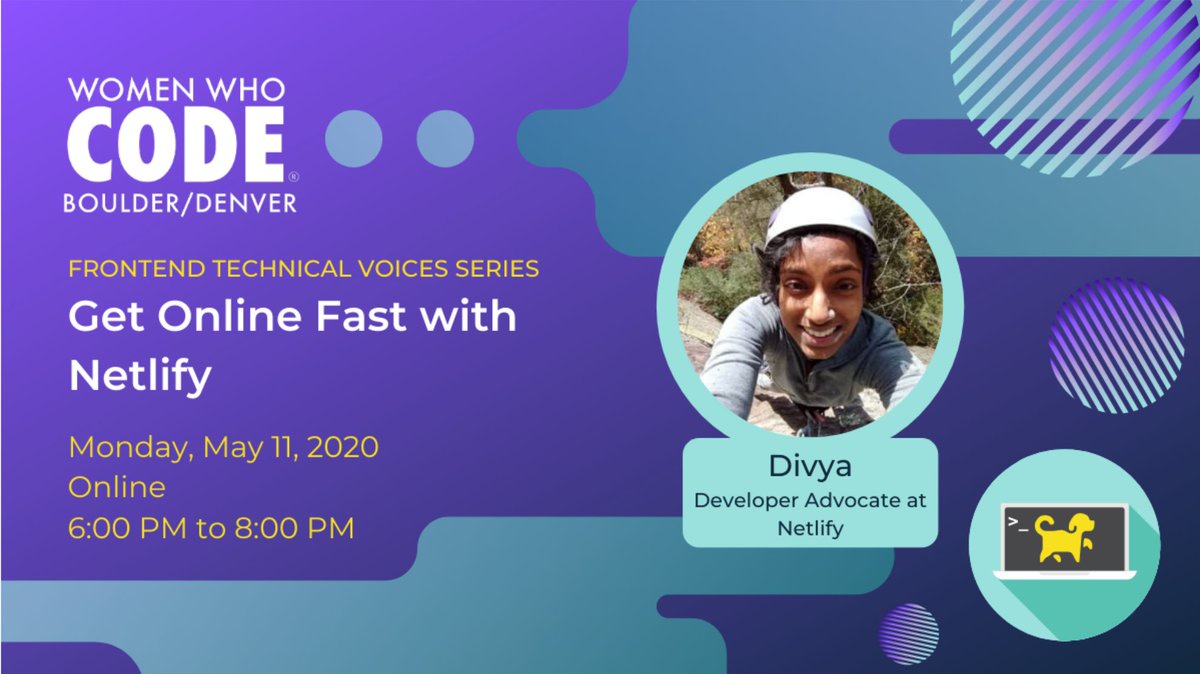 Come hang out and learn about all the awesomeness that is @netlify and getting your site online from @divya who is a really great speaker / teacher with me and @wwcodecolorado tomorrow.