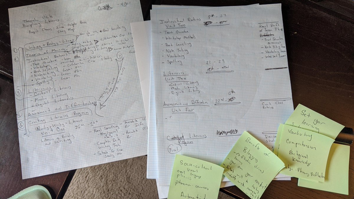 "text": "My #edu407 planning notes, even my course design starts on paper. #literacies #instructionaldesign",