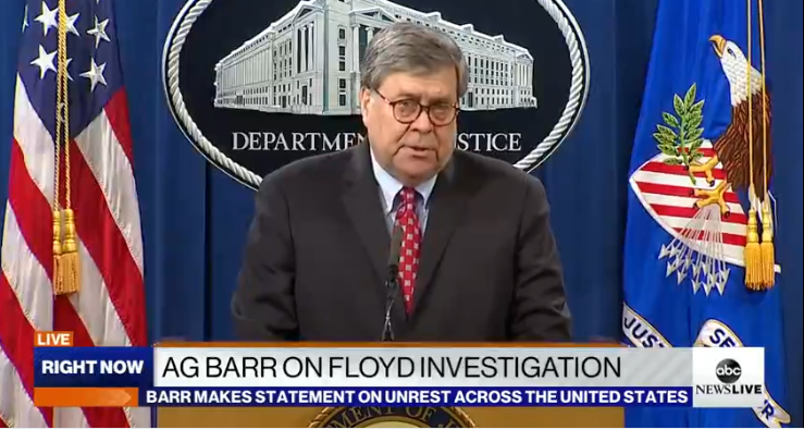 Bill Barr on TV now saying the violence and rioting is coming from “far-left,” “Antifa" without any evidence.