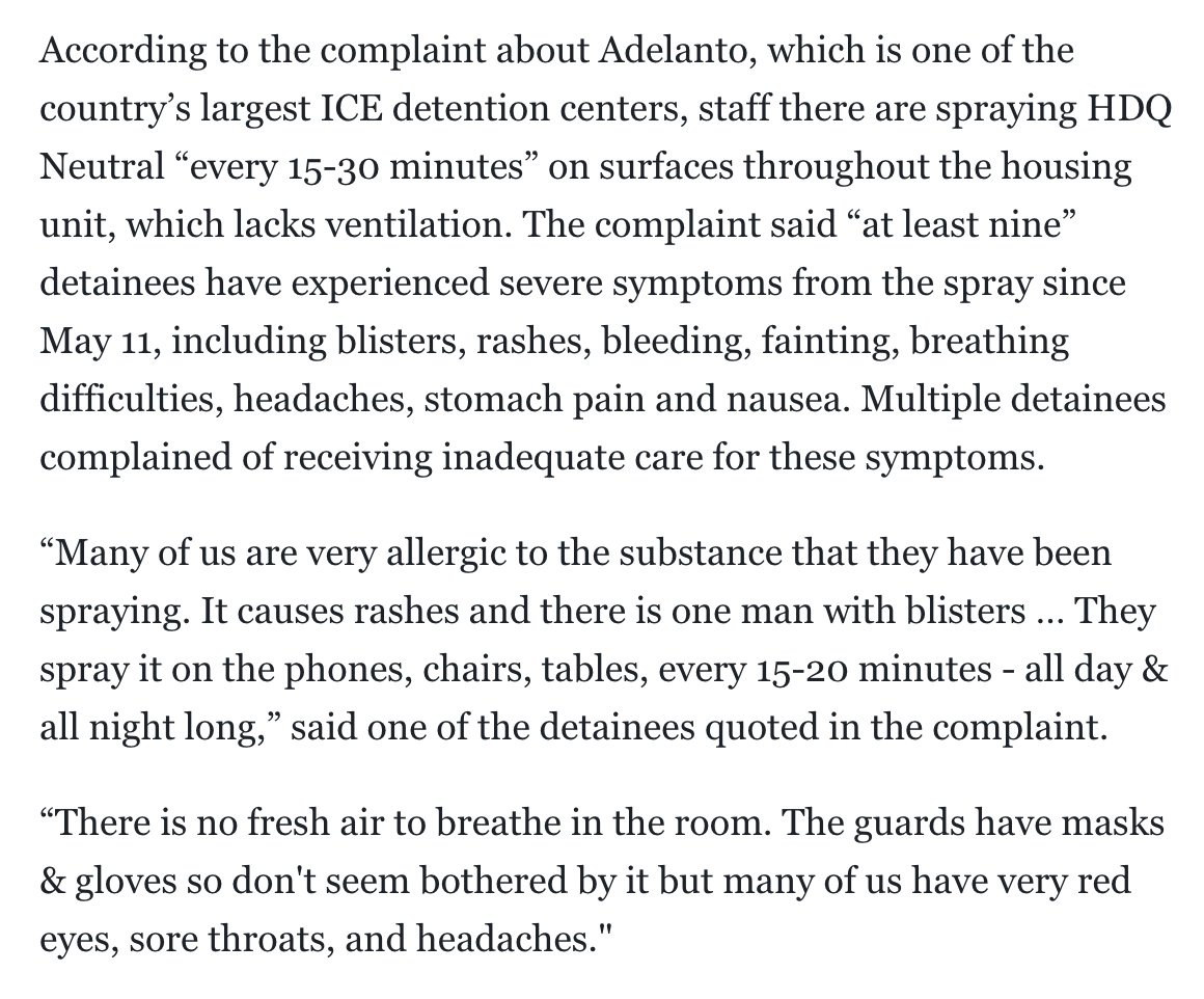 ICE detention camps are now inches away from establishing full-blown gas chambers. HDQ Neutral is less lethal than Zyklon B but they're spraying it EVERY 15 MINUTES.