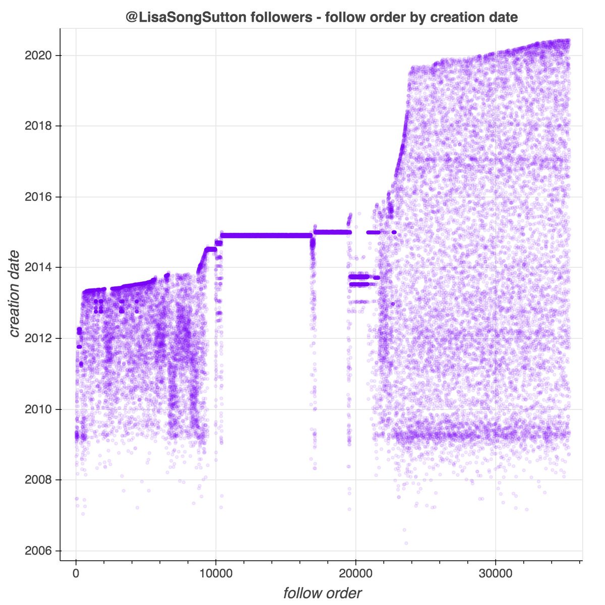 "text": "Here's a look at an actual botnet. These bots don't argue about or even really mention politics. Their job is to simply not get swept up in mass bannings by Twitter and occasionally they can be sold as followers to inflate a follower count. (Not everyone they follow pays for it.)"