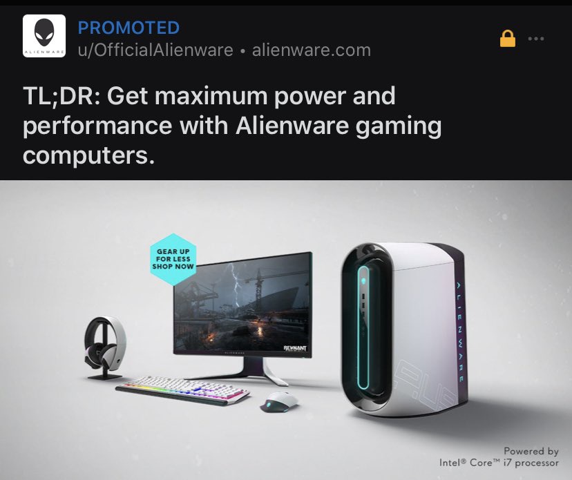"text": "Why is everybody making fun of the new PS5 design? This is what Alienware's advertising on Reddit!"