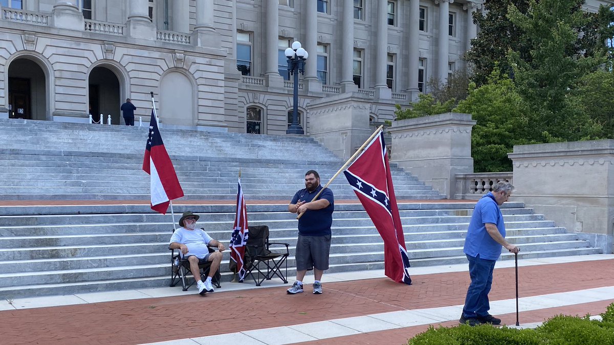 This group of protesters, from Corbin, came to oppose the removal of the Jefferson Davis statue from the Capitol rotunda.