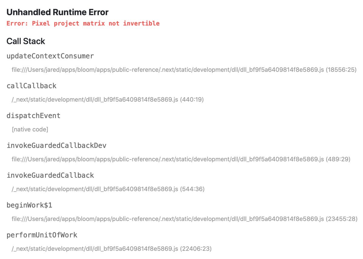 "text": "Watch out for that non-invertible pixel project matrix\u2026it's a dooooozy!\n\n\ud83e\udd2a\n\nSeriously, WTF kind of error message is that??!!"