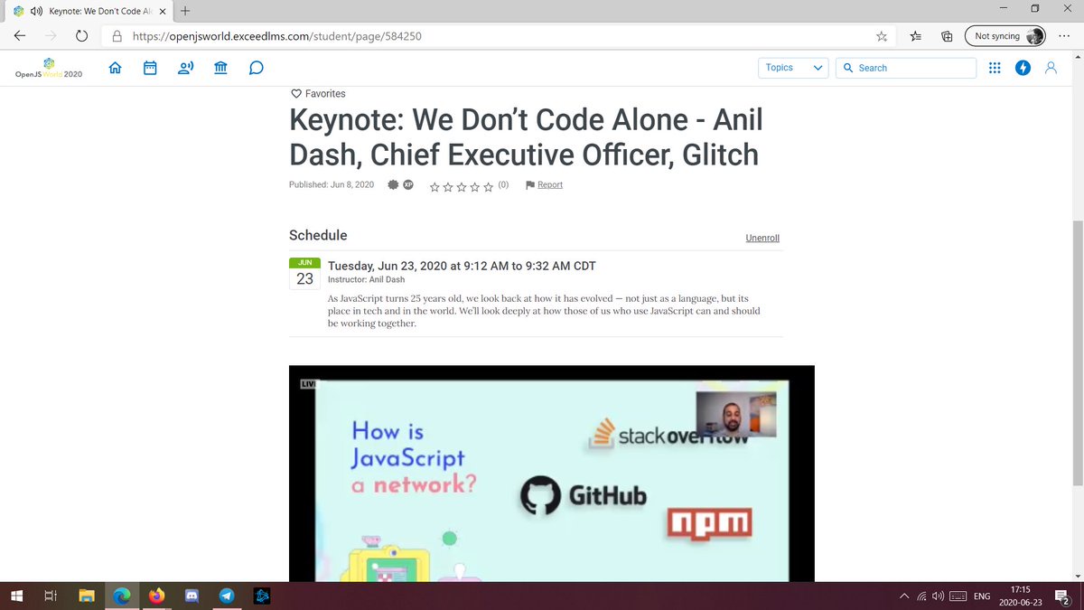 My sincerest congratulations go out to @openjsf who managed to host #OpenJSWorld on a platform that's not only confusing and clunky and in itself a barrier of entry but ALSO fails in @Firefox with no error whatsoever in its most core requirement... 🤦🏻♂️