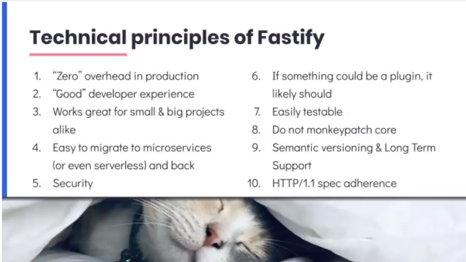 "html": "\"We wanted Fastify to have very little overhead. It's not really *zero*, this isn't <a href=\"https://twitter.com/rustlang\">@rustlang</a>, but still, you could do pretty good things in <a href=\"https://twitter.com/nodejs\">@nodejs</a> too\" :D <a href=\"https://twitter.com/matteocollina\">@matteocollina</a>\n\n<a href=\"https://twitter.com/fastifyjs\">@fastifyjs</a> may be built on modern tech principles, but at its core it's not about technology\u2014but people!\ud83d\udc96"