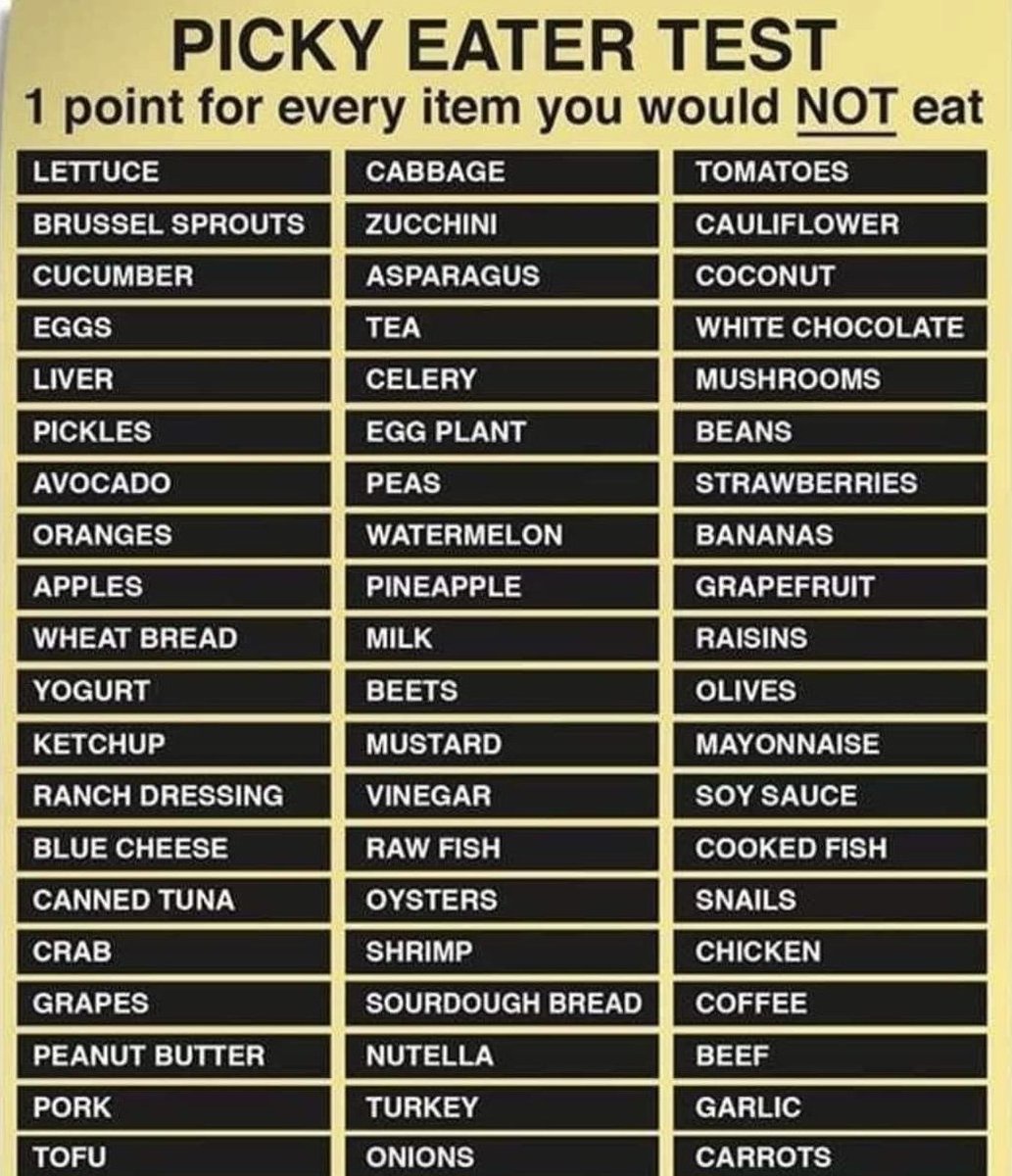"text": "My number is two. One is solely because I medically cannot eat it (Grapefriut, which is delicious and I miss). The other is snail, which I have tried, but just can\u2019t seem to develop a taste for."