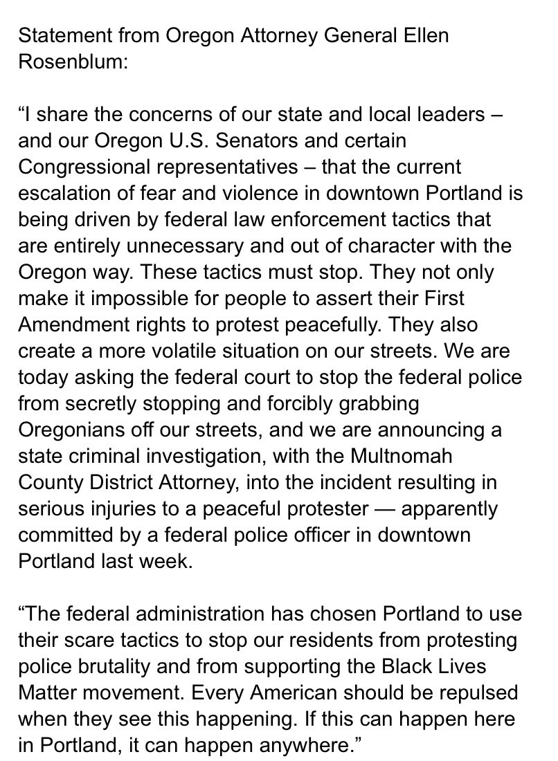 Tonight we will file a lawsuit in federal court against U.S. Department of Homeland Security, U.S. Marshals Service, U.S. Customs and Border Protection, and the Federal P...