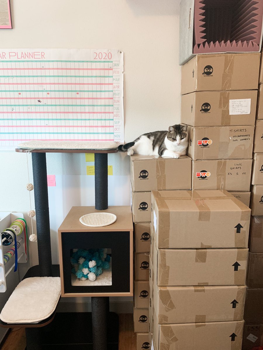 Someone does not appreciate my efforts to provide her with a nice workspace. I moved all those boxes for nothing.