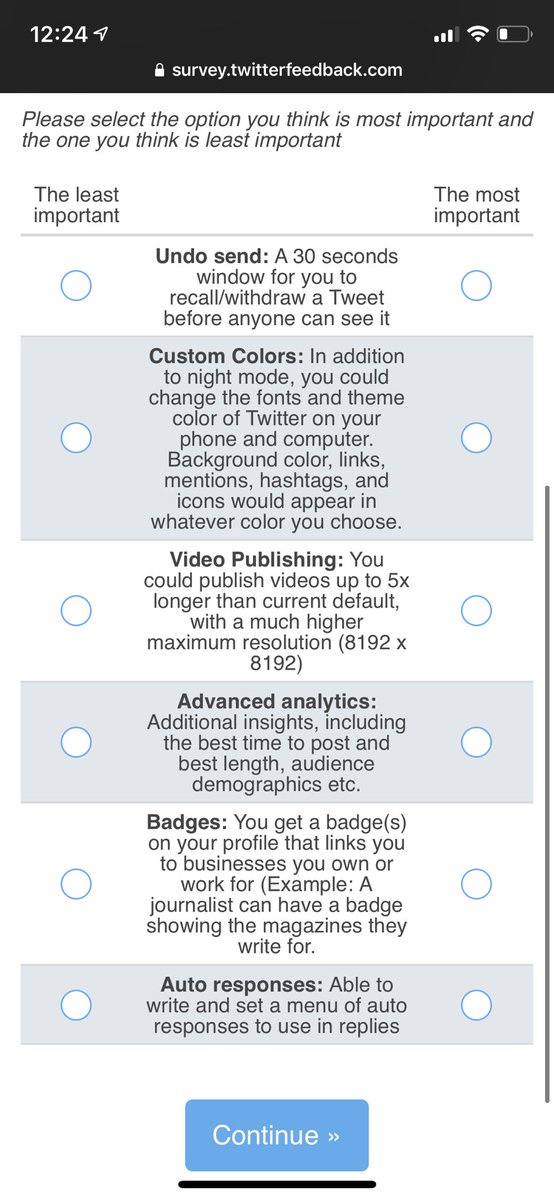 "text": "After CEO Jack Dorsey confirmed Twitter is exploring a subscription model, the company is conducting user surveys on what type of features they'd like to see in such a service.\n\nUndo send, special badges for profiles and advanced analytics are among the features being considered."