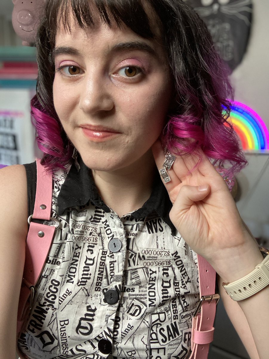 "text": "Since I secretly want to be the Miss Frizzle of Economics, I never turned down a themed outfit opportunity. Today\u2019s livestream includes dollar bill earrings, a stock market dress, and what I imagine to be a \u201cbond\u201d trader harness ;)"
