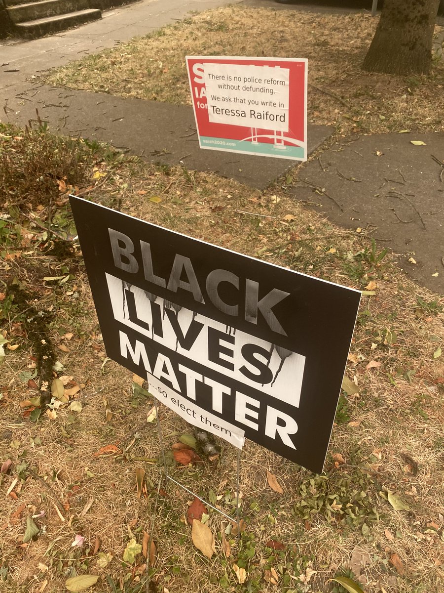 Thread from @sarahforpdx's campaign manager @GregoryMcKelvey on the write-in campaign for Raiford—and the recent related theft and vandalism of Sarah's yard signs.