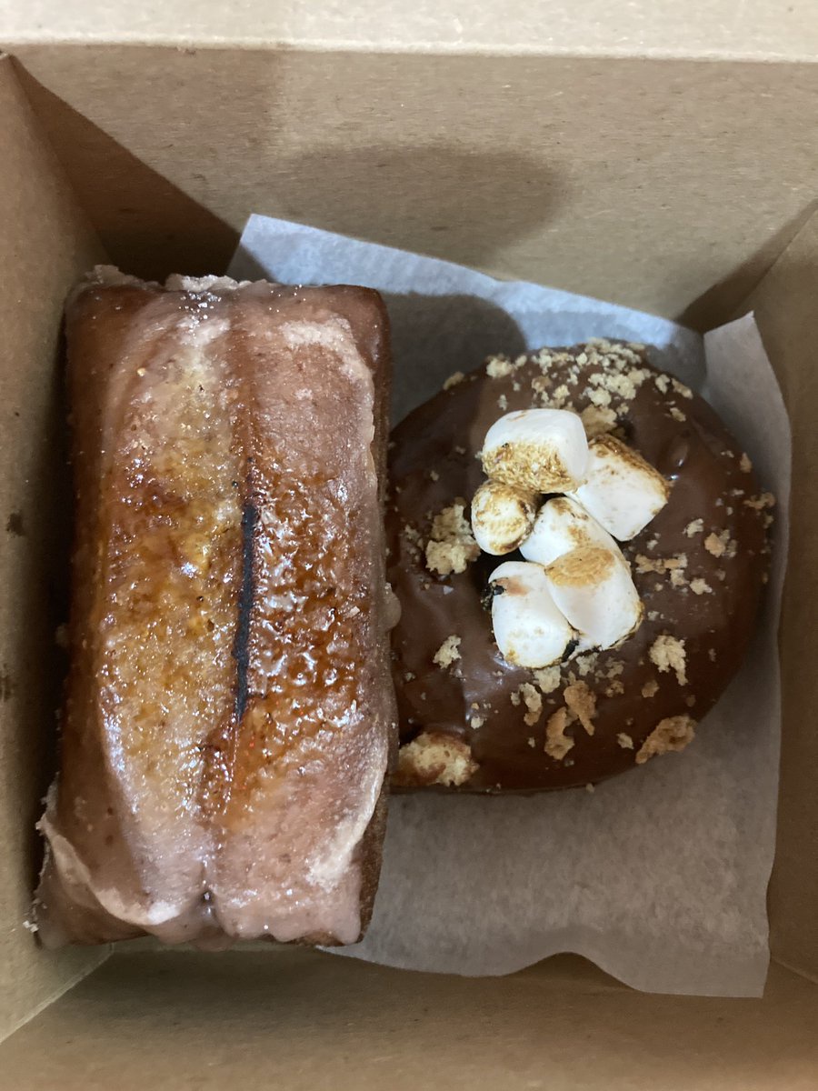 "text": "Keeping it topical: Tomorrow\u2019s livestream donuts are a s\u2019mores donut and a burnt fig buttermilk bar."