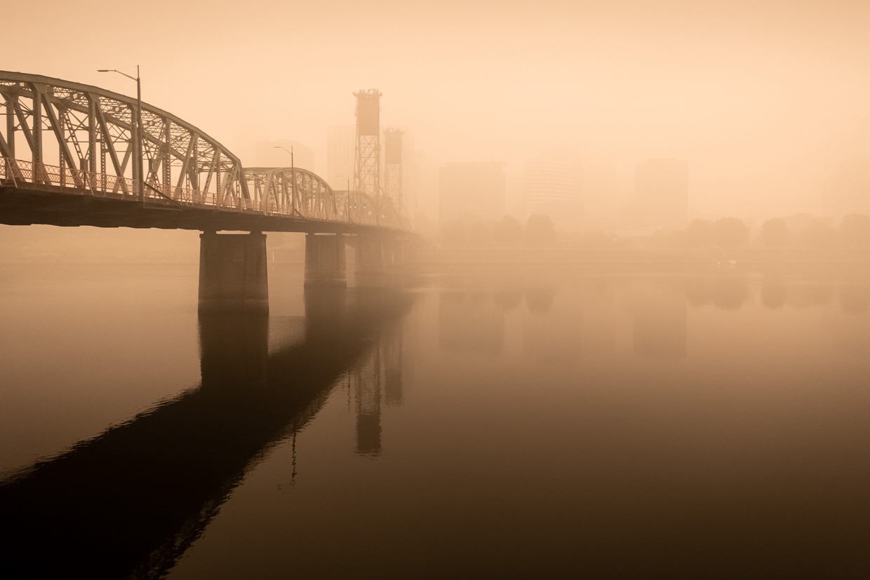 "html": "Went on a bike ride down to the waterfront today. The air isn't all that much worse outside than inside this point especially with an N95 mask, so thought it'd be a fun adventure. <br /><br />This photo is not desaturated, this is what it actually looks like in Portland right now."