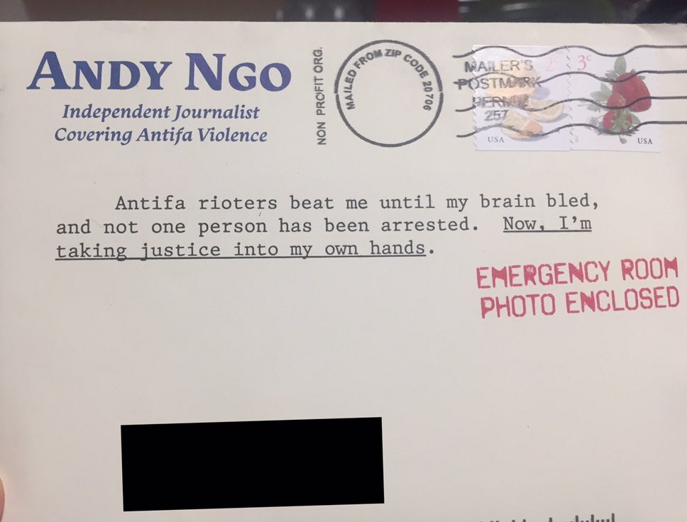 Andy Ngo sent my grandma this piece of mail. It’s kind of hilarious