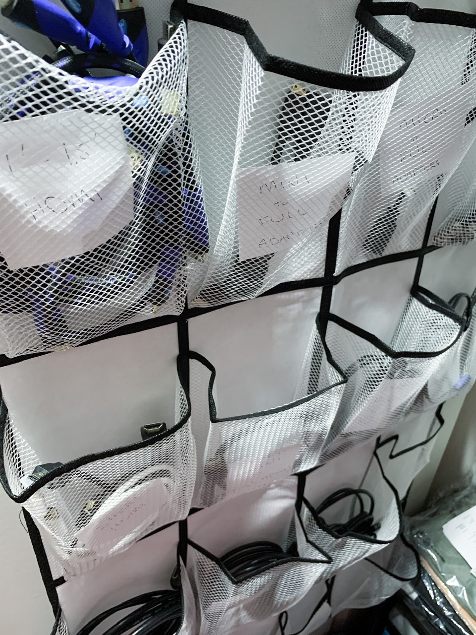All my HDMI cords are now sorted by length and connector combo (full HDMI, micro, mini) and hung up on the inside of my closet door and this is so much nicer than cramming them into various drawers! Next up: USB