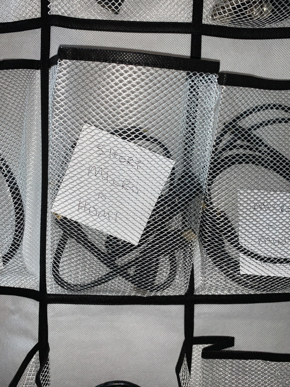 "text": "All my HDMI cords are now sorted by length and connector combo (full HDMI, micro, mini) and hung up on the inside of my closet door and this is so much nicer than cramming them into various drawers! Next up: USB"