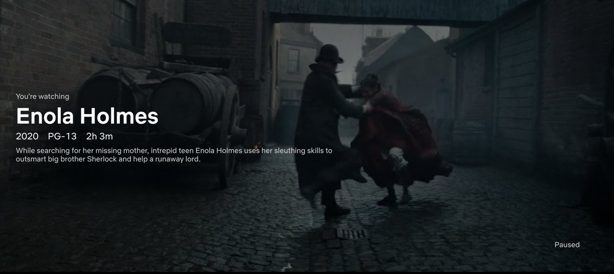 "text": "I am halfway through the Enola Holmes film on netflix and I will tell you that apparently I desperately needed an Edwardian teenager suffragette coming-of-age drama with train fight scenes in bustles + corsets."